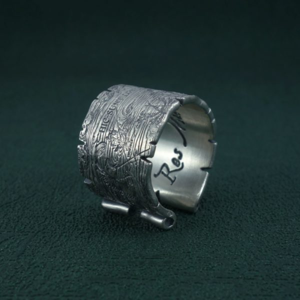 Sur cet anneau est gravée une carte marine médiévale, enluminée de monstres marins et de créatures fantastiques. Fabrication Française, argent 925.