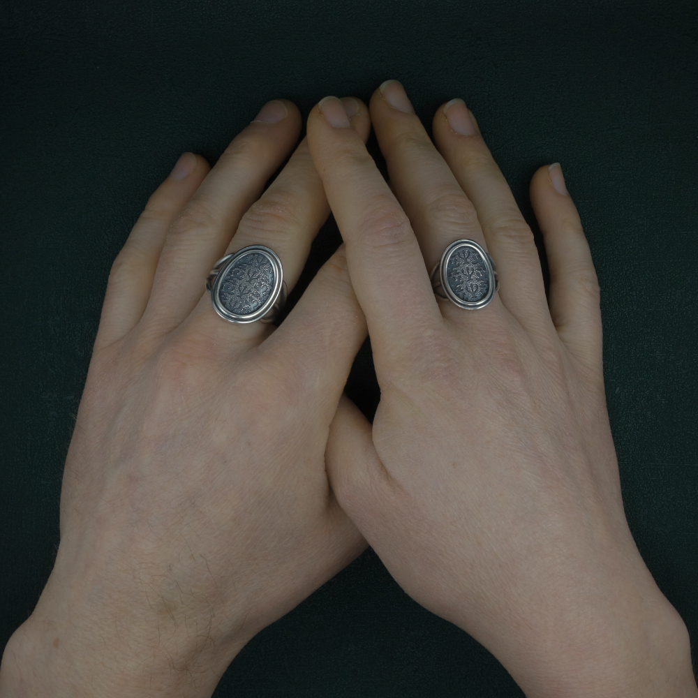 Finition : Nous donnons à l’argent un aspect patiné ancien pour conférer aux bijoux un cachet antique, et faire ressortir les détails des motifs et les gravures.