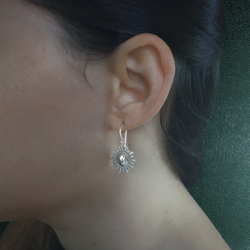 Ces boucles reprรฉsentent une constellation au milieu d’un miroir en forme de soleil. Ce bijou est de fabrication artisanale Franรงaise, en argent 925โฐ.