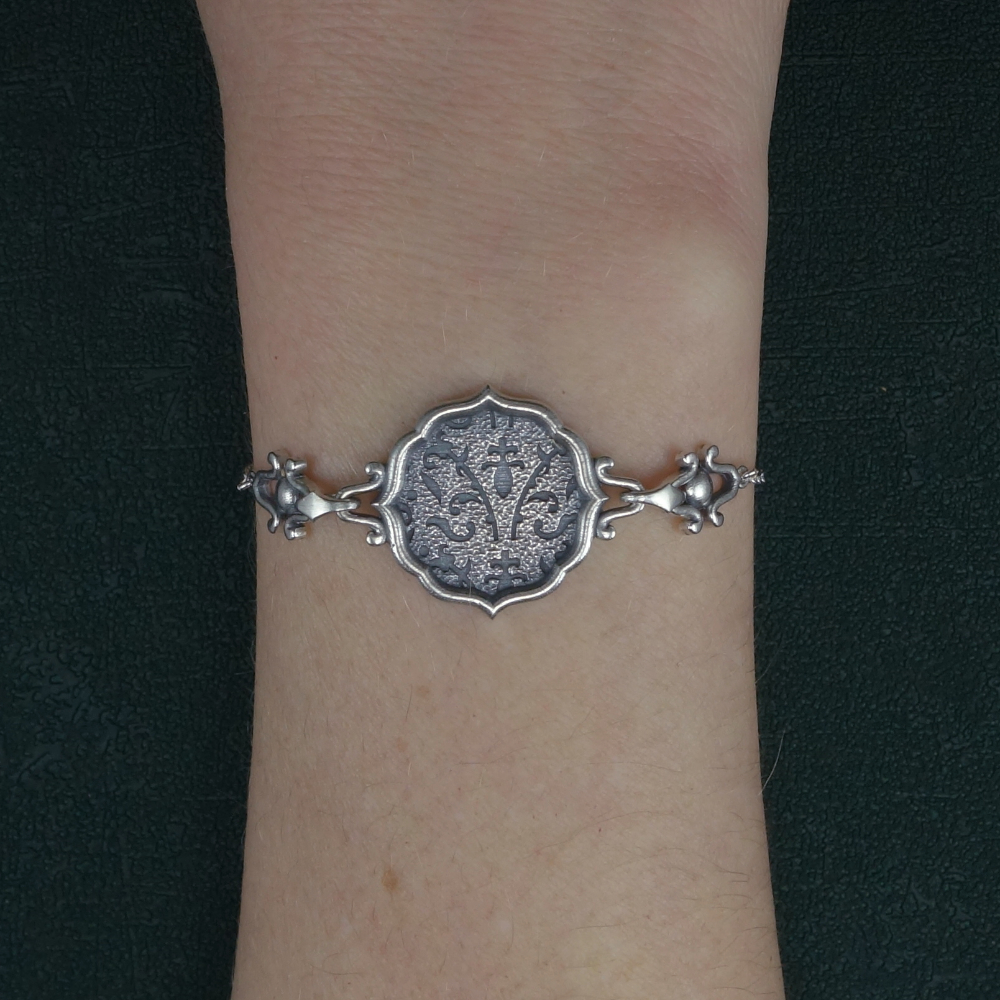 Ce bracelet reprend la fleur de lys, évoquant la royauté et le style Marie-Antoinette. Ce bijou est de fabrication artisanale Française, en argent 925‰.