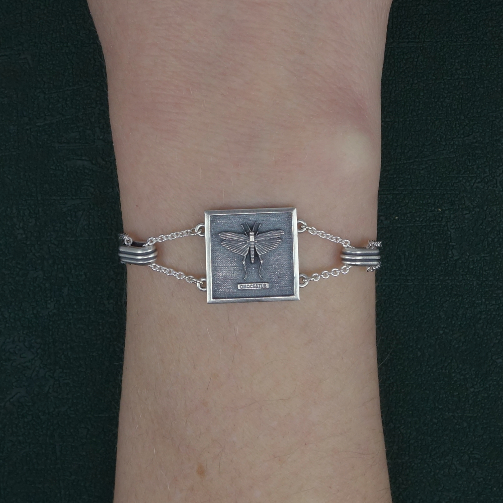Ce bracelet est issu de la ligne Entomologie, qui décline des insectes à la manière des cadres entomologiques anciens. L'entomologie est une science née au XVIIIe siècle, d'abord appelée insectologie. Les cadres entomologiques sont très emblématiques des cabinets de curiosités, l'univers de Res Mirum. Si vous êtes curieux d'en savoir plus sur l'ambiance & l'histoire de cette ligne, c'est ici !