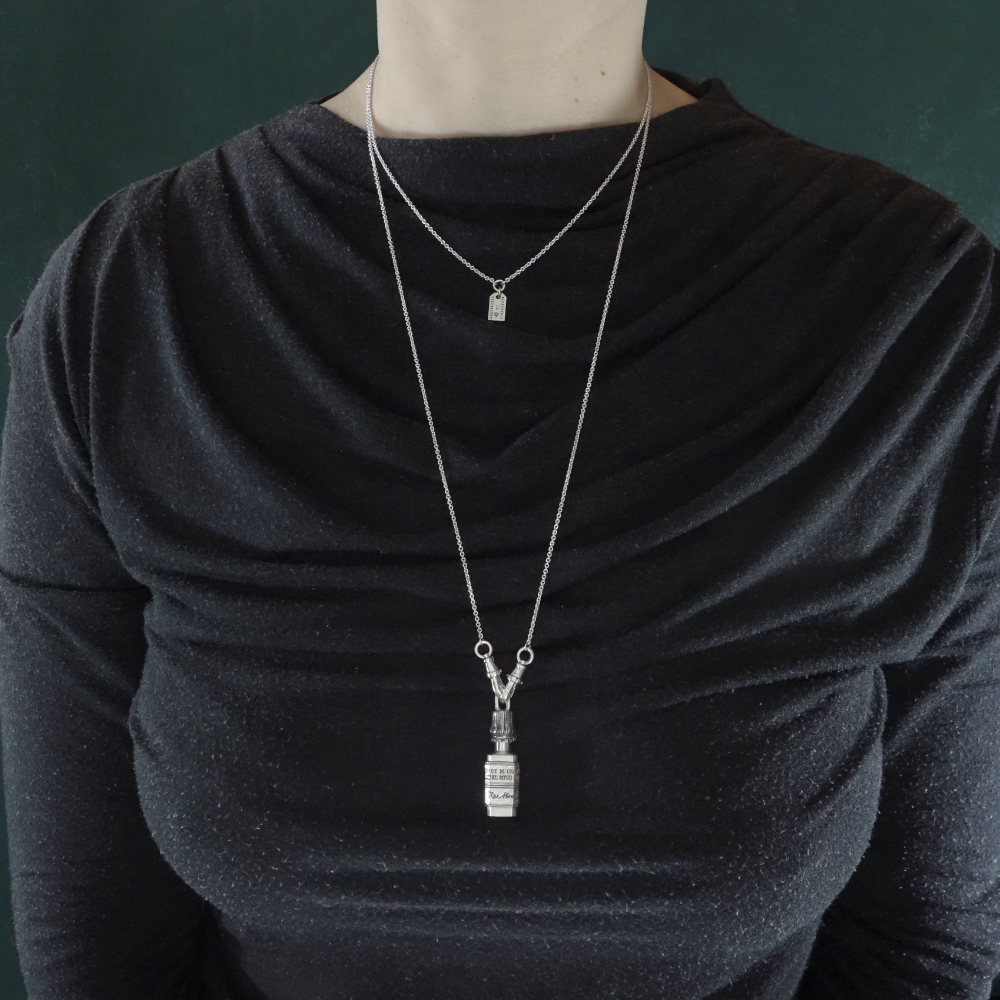 Cette chaîne est issue de la ligne Apothicaire. Les bijoux de la ligne Apothicaire sont inspirés des anciennes fioles et flacons des apothicaireries, ancêtres de nos pharmacies, qui fournissaient onguents, potions et produits rares. Si vous êtes curieux d'en savoir plus sur l'ambiance & l'histoire de cette ligne, c'est ici !