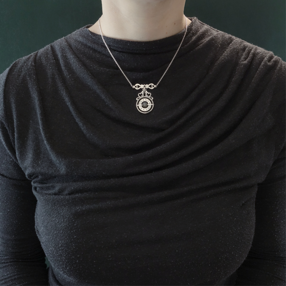 Ce collier s’inspire d’un instrument astronomique rรฉtro, dans un esprit steampunk. Ce bijou est de fabrication artisanale Franรงaise, en argent 925โฐ.