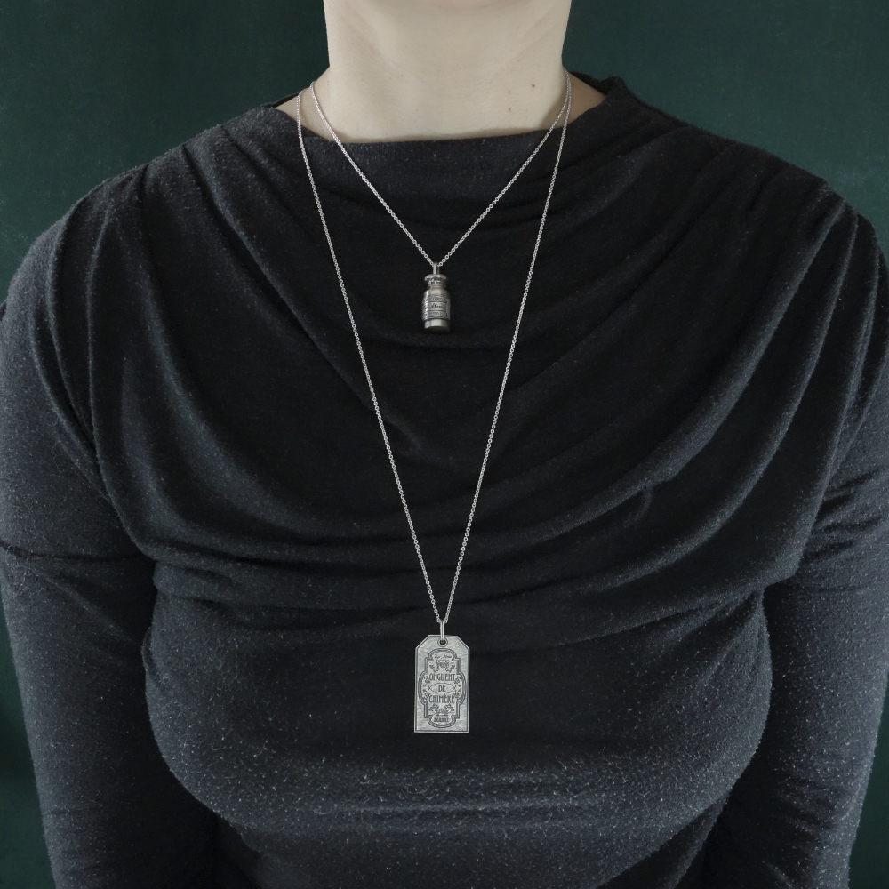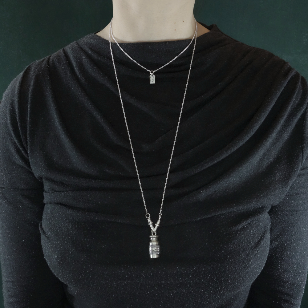 Ce pendentif est issu de la ligne Apothicaire. Les bijoux de la ligne Apothicaire sont inspirés des anciennes fioles et flacons des apothicaireries, ancêtres de nos pharmacies, qui fournissaient onguents, potions et produits rares. Si vous êtes curieux d'en savoir plus sur l'ambiance & l'histoire de cette ligne, c'est ici !