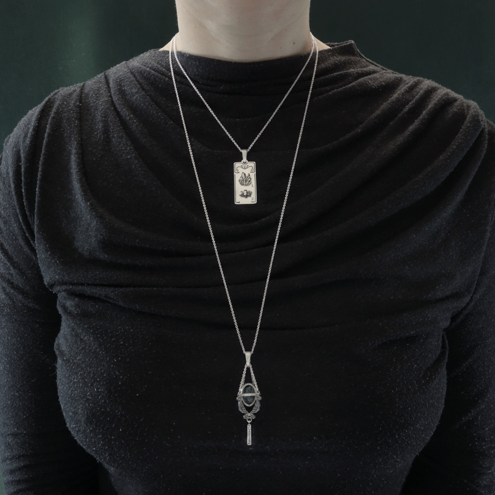 Finition : Nous donnons ร l’argent un aspect patinรฉ ancien pour confรฉrer aux bijoux un cachet antique, et faire ressortir les dรฉtails des motifs et les gravures.