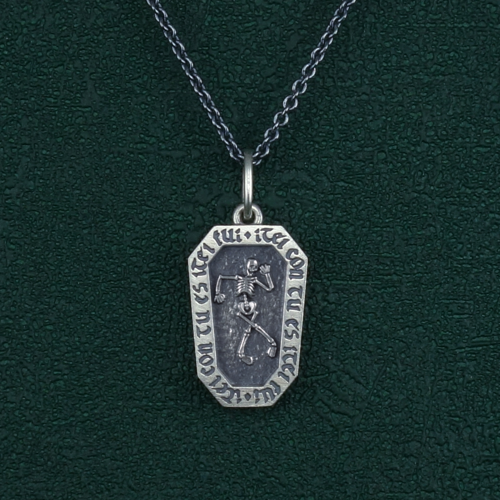 Ce pendentif s'inspire de peintures apparues fin moyen รขge โ dรฉbut Renaissance montrant des morts entraรฎnant les vivants dans une joyeuse sarabande. Il reprรฉsente un squelette en train de danser. Le contours, qui rappellent la forme d'un cercueil, portent l'inscriptions ยซย Itel con tu es itel fuiย ยป signifiant ยซย tel que tu es, tel je fusย ยป, phrase extraire de la lรฉgende des trois Morts et des trois Vifs, oรน trois cadavres s'adressent ร trois jeunes riches en leur signifiant le sort que Dieu leur rรฉserve.